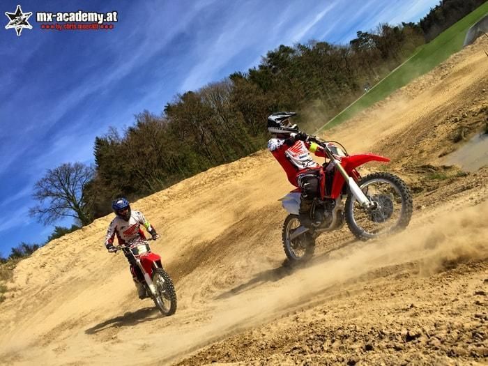 Die Betriebsausflugs Teilnehmer, welche schon Erfahrungen mit einem MX Bike besitzen können auf ihrem bereits bestehendem Fahrkönnen weiter aufbauen und dieses verfeinern und vertiefen. Wir analysieren das Fahrverhalten der fortgeschrittenen Piloten und geben ihnen Tipps und Tricks wie Sie sich noch weiter steigern können. Selbstverständlich können sie auch mit ihrem eigenen Motorrad an dieser Betriebsausflug Idee teilnehmen und die Techniken mit dem persönlichen Bike weiter ausbauen. Mehr zu den Trainings für die erfahrenen Piloten findest Du auf Motocross Training.